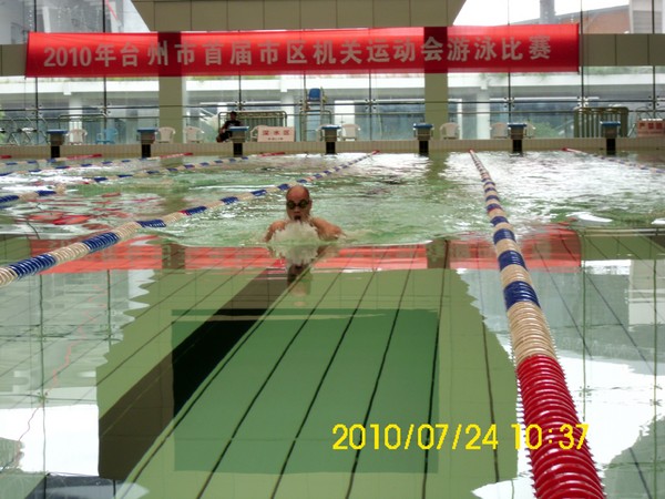 2010年7月24日,台州市首届市区机关运动会游泳比赛在市体育中心游泳馆举行,台州公安代表队组队参加,并在多个项目上斩获好成绩。台州公安代表队获得40岁以下男子4×米混合泳的冠军;黄岩分局章昕和椒江分局张凌辉分获40岁以下男子组100米自由泳第一和第三名;黄岩分局章昕和侯丹阳分获40岁以下男子组200米蛙泳第一、五名和40岁以下男子组50米蛙泳第一、四名;椒江分局王良胜获得40岁以上男子组100米自由泳第七名;黄岩分局王彪获得40岁以上男子组200米蛙泳第七名。黄岩分局周晨、林萍和市局王琼分获40岁以上女子组50米蛙泳第一、二、四名;黄岩分局林萍、周晨和市局王琼还分获40岁以上女子组100米蛙泳第一、二、八名;市局符冰清获得40岁以下女子组50米自由泳第一名;黄岩分局张自芳获得了40岁以下女子组100米蛙泳第二名和40岁以下女子组50米蛙泳第六名。