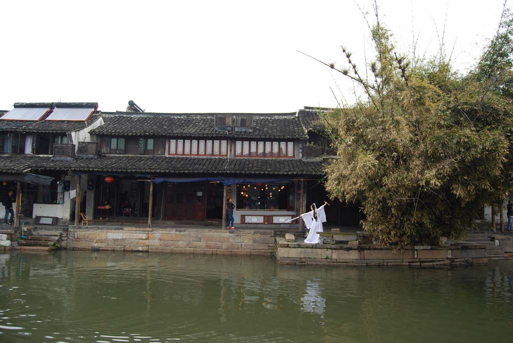 来到嘉兴市嘉善县西塘时,正赶上下雨天,雨不大,感受到烟雨江南的那种水乡韵味。濛濛细雨中的西塘,白墙黛瓦,舟影波光,恰如一幅淡彩的宣纸画。