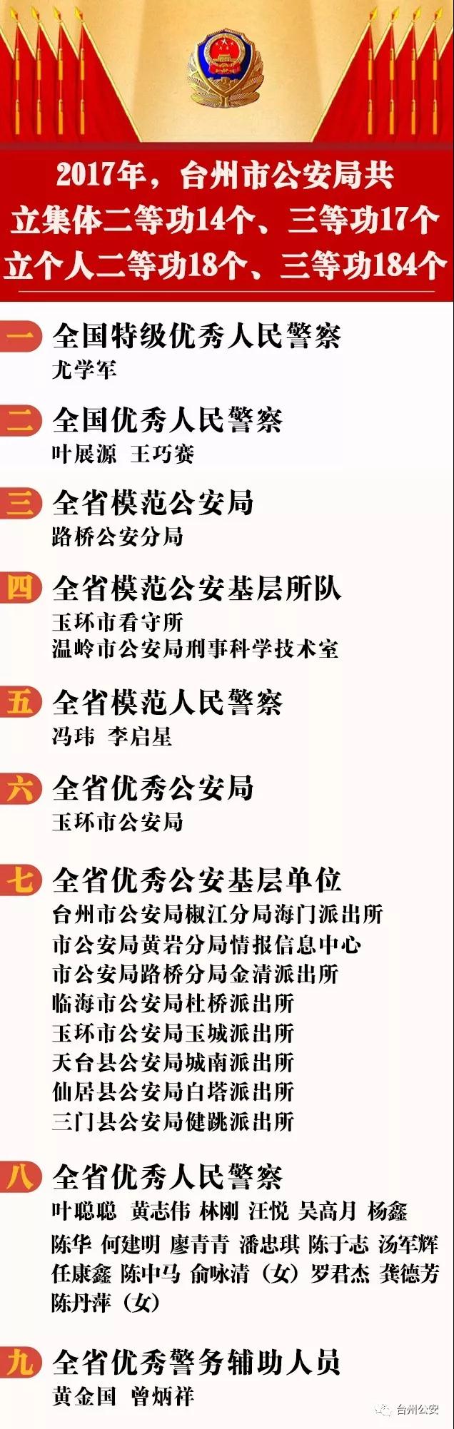 2017年,台州公安坚持以“人民利益高于一切、平安稳定压倒一切、工作实绩说明一切”为引领,以“勇争第一、勇立潮头”为导向,以“强势治安、精细治业、情理治警”为途径,牢固树立“四个意识”。
