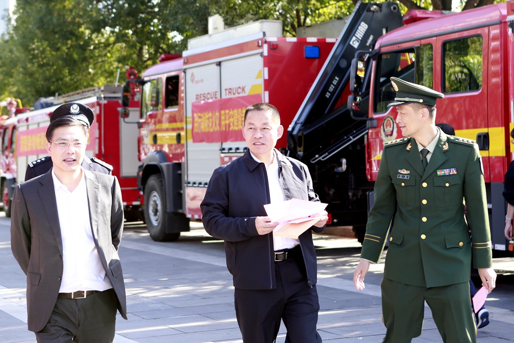 11月9日下午,台州市“119”消防宣传月启动仪式暨全民消防大体验活动在市民广场举行。台州市副市长、公安局长伍建利宣布“119”消防宣传月活动开始,并为全市10名“全民消防 我代言”代表颁发聘书以及家庭应急逃生“四件套”,台州市政府副秘书长陈肖力主持启动仪式。市局党委委员、副局长黄文清参加了启动仪式。