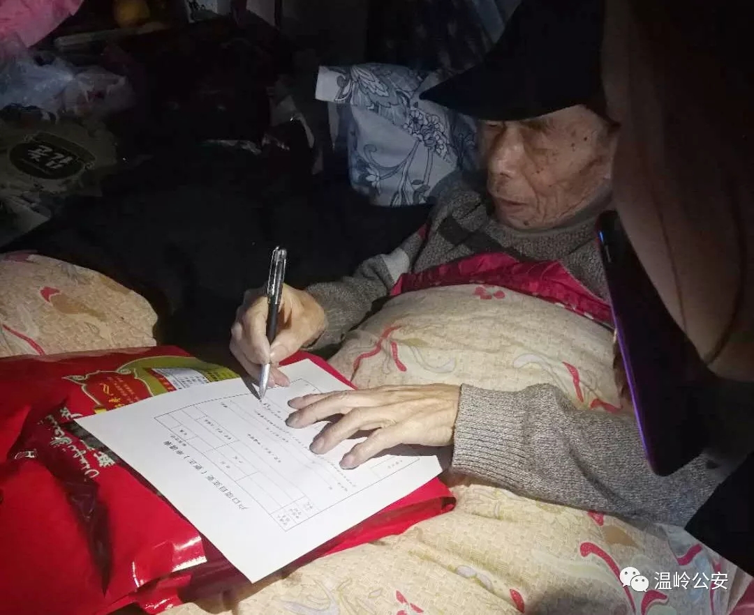 林阿公年事已高,行动不便,可很多涉及家庭的事情都需要户主亲自确认,对其生活带来了极大的不便,因此想把“户主之位”“禅让”给儿子。然而变更户主这件事也是需要户主亲自确认,阿公自己瘫痪在床,无法到警务区办理手续。牧屿警务区户籍民警吴雨欣得知情况后,为让群众切身感受公安机关“最多跑一次”改革便民措施,马上联系林阿公,约定上门办理业务。1月2日下午,工作人员带着相关资料来到了林阿公家解决他的难题。